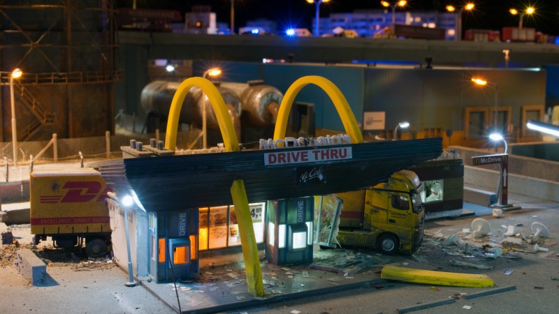 A “surreal model village experience”, the ADP is a post-riot landscape created in miniature (1:87 to be precise) and contained within a 40ft shipping container.