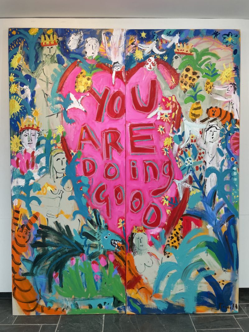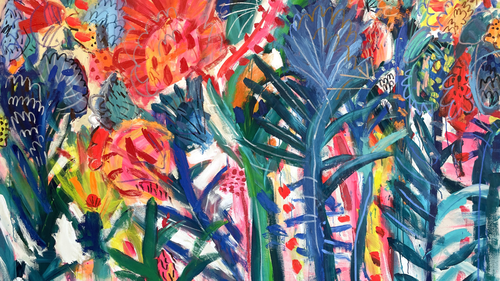 Her style is recognisable for its childlike exuberance, and her personal iconography, which most often features tigers, symbolising joy, daring and exploration.