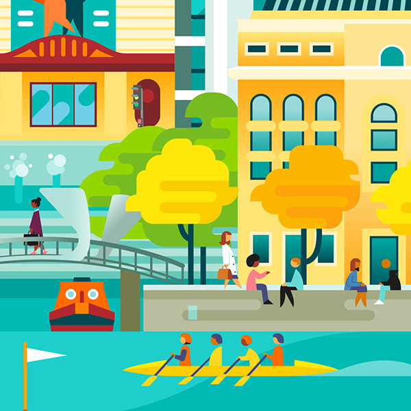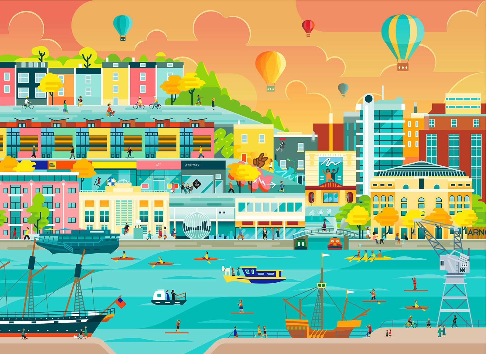 “The scene is based around the marina, with its historic sites, paddle boarders and, of course, a Gromit, but also incorporates Bristol’s colourful houses, cafes, football teams and hot air balloons!”
