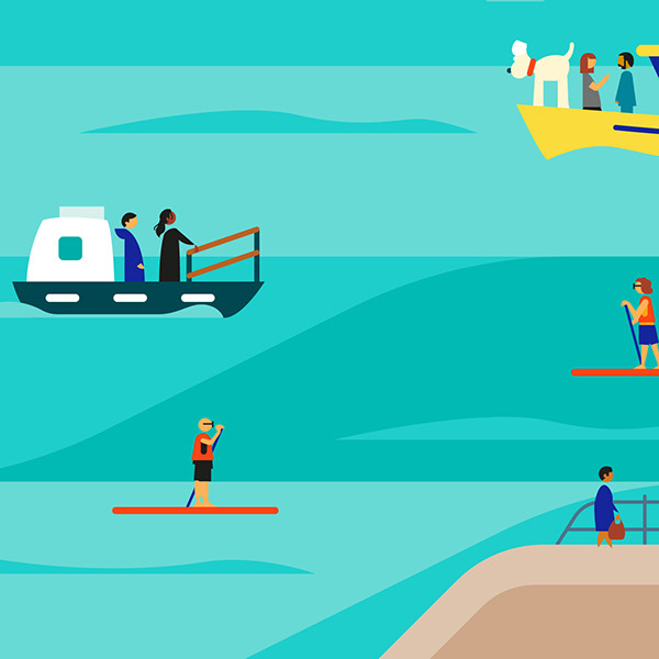 Stand-up paddleboarders, the cross-harbour ferry and a Gromit