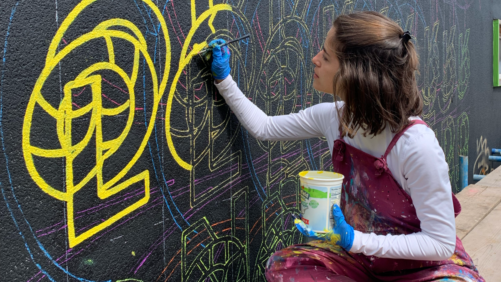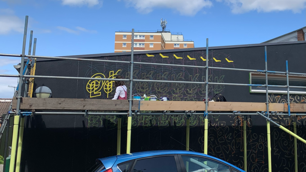 Daniela de Castro Sucre is an artist, muralist and designer currently painting her contribution to the street art festival in Bedminster.