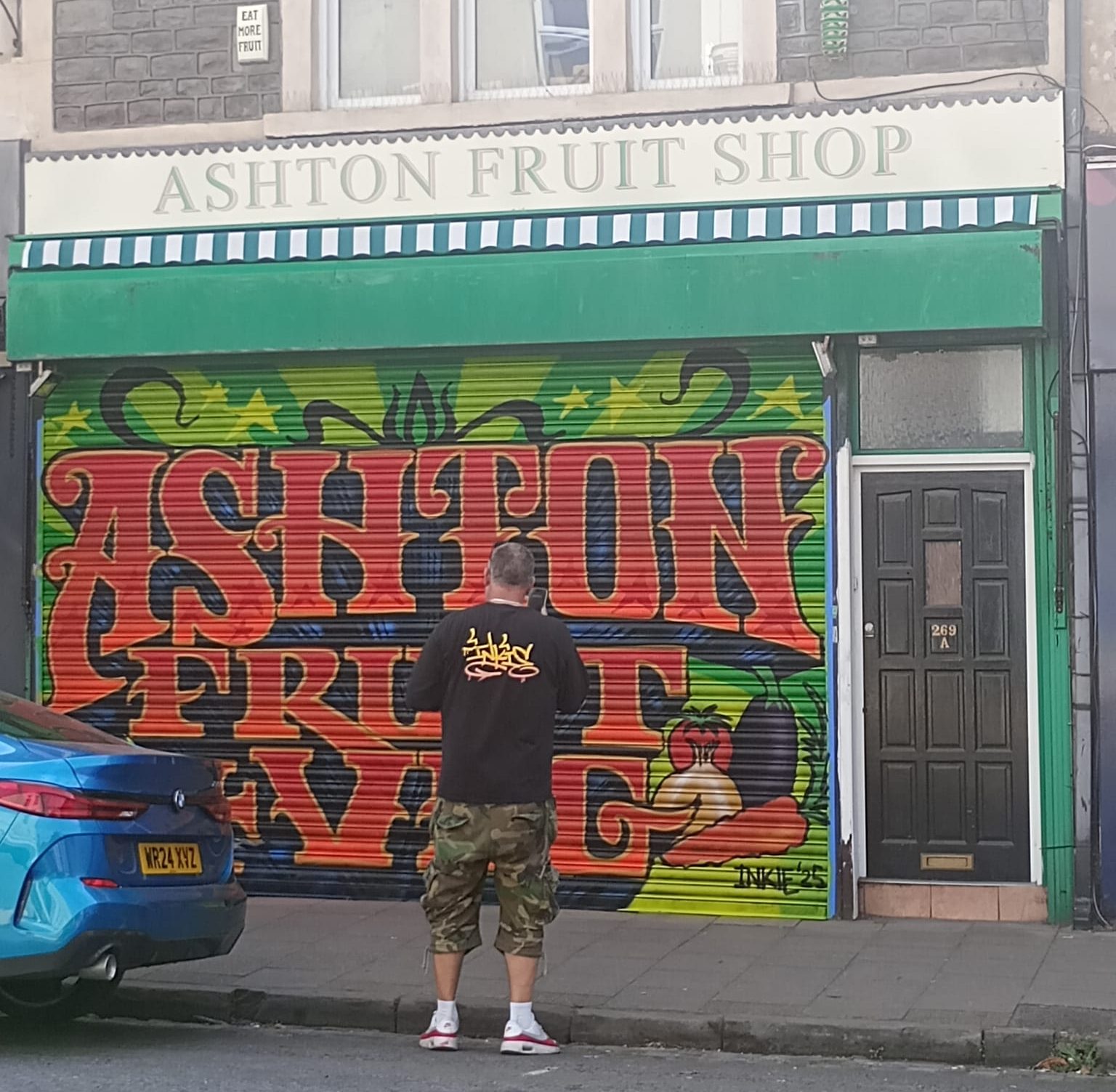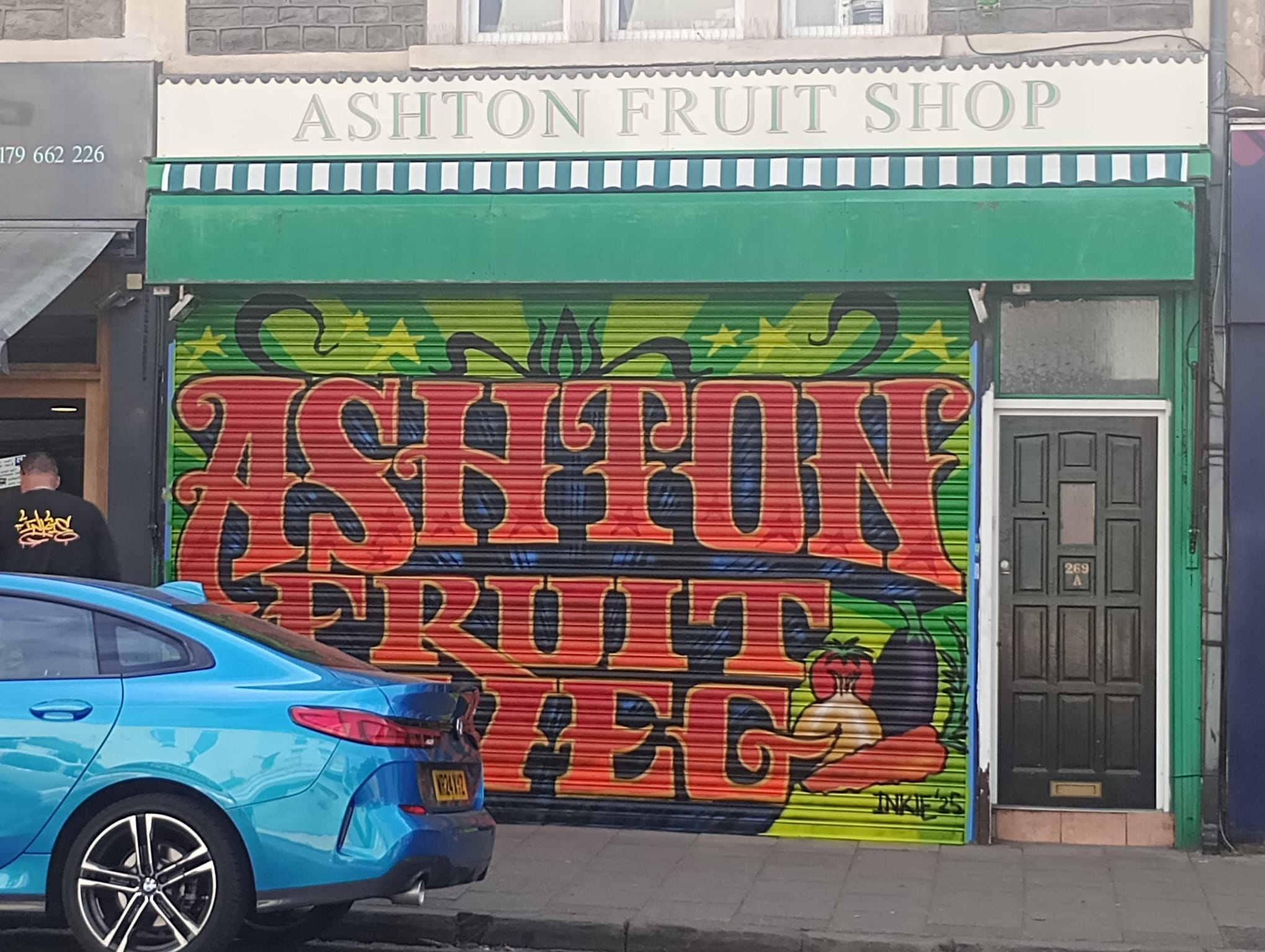 Ashton Fruit Shop reached out to Inkie to decorate their shopfront – photo: Joanna Stopford