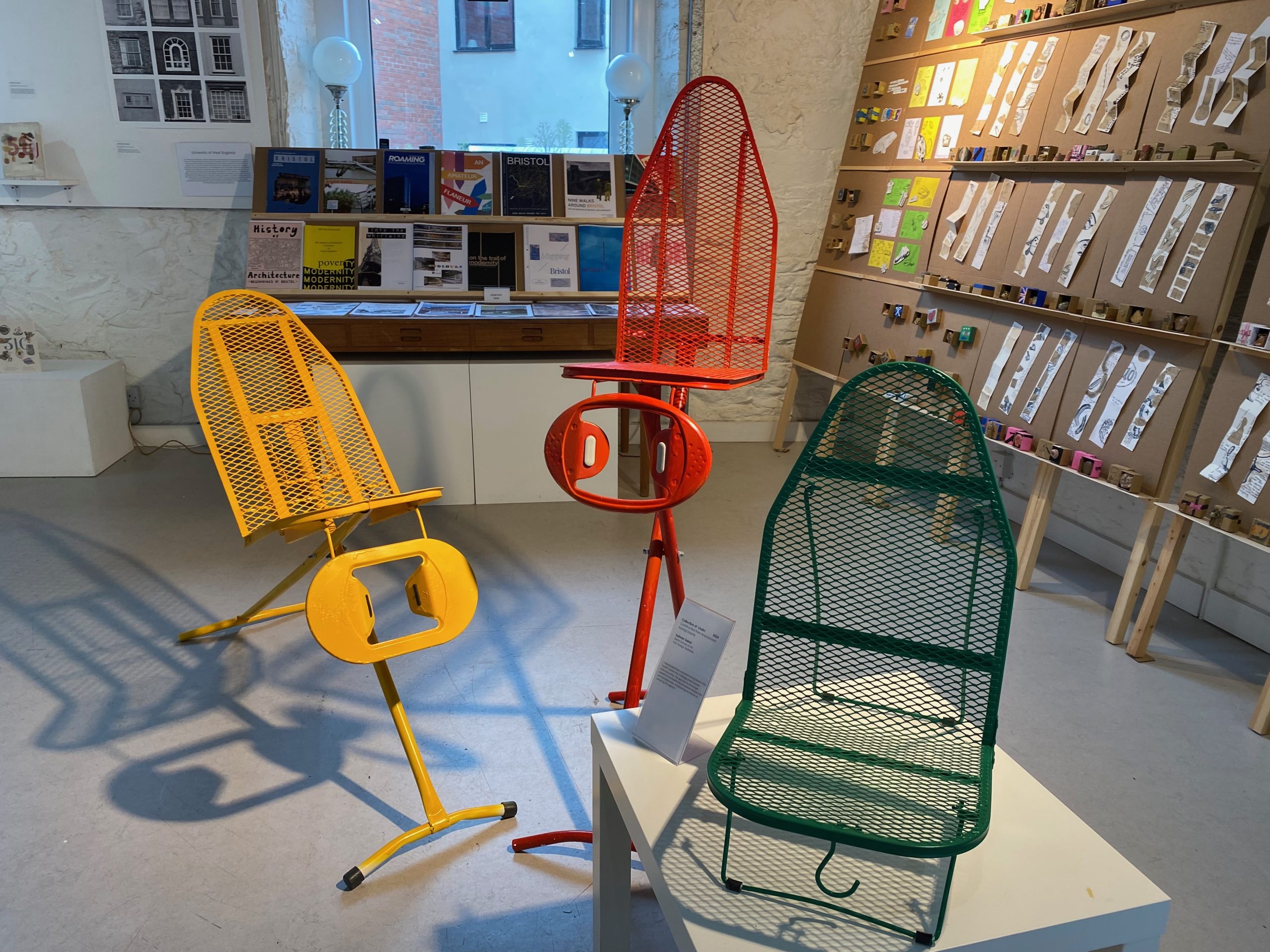 Salman Salad’s display of a collection of chairs made by repurposing three unwanted ironing boards