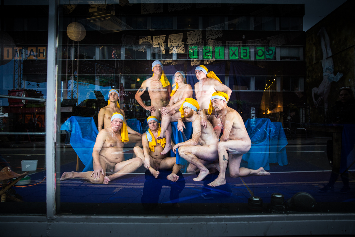 In total, 13 volunteers derobed for the project, with five of this number walking in off the street to join the group that was already posing inside Corner 77.
