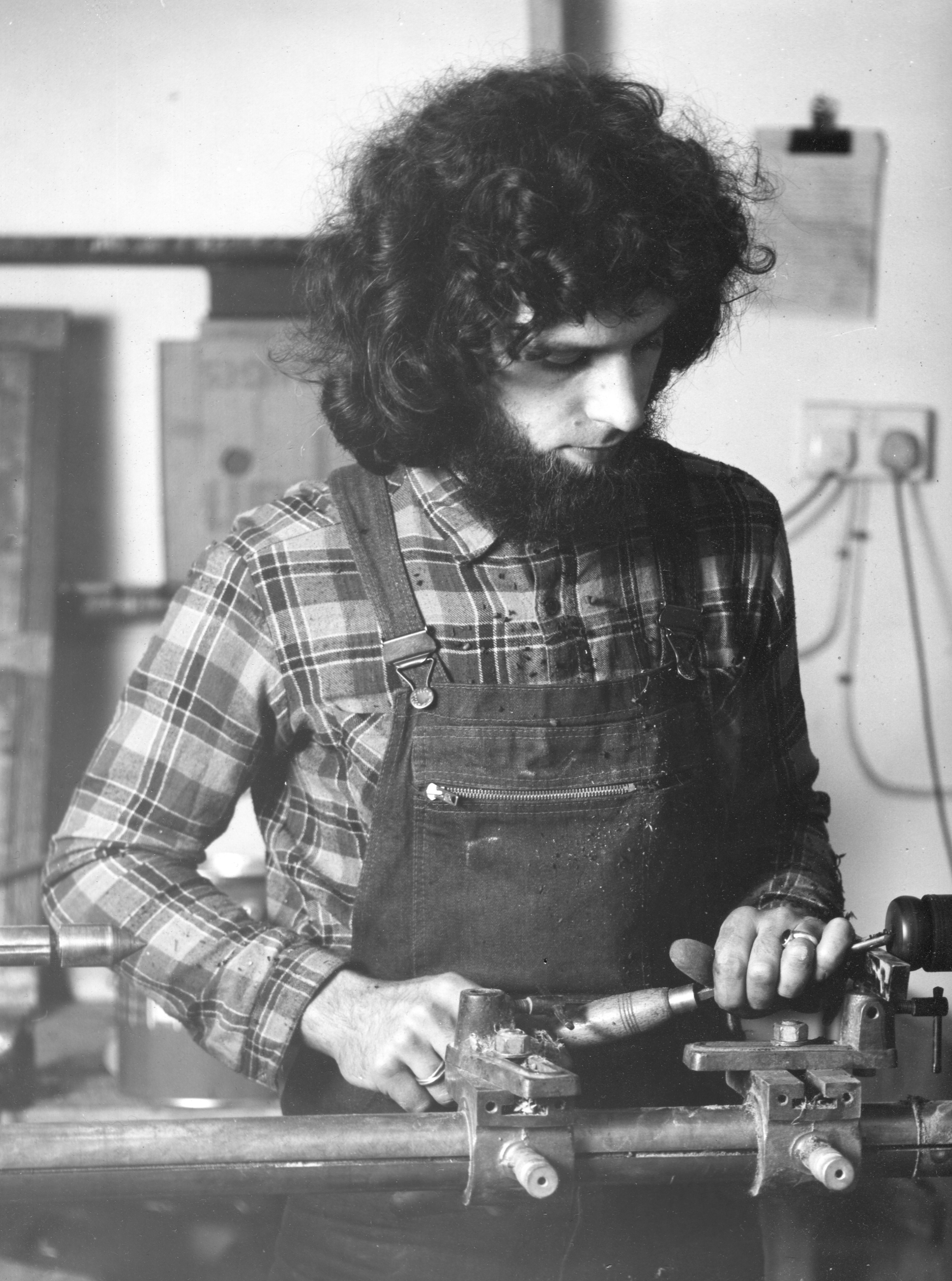 Bristol Craft Centre co-founder George Sobol at his woodturning machine back in 1977