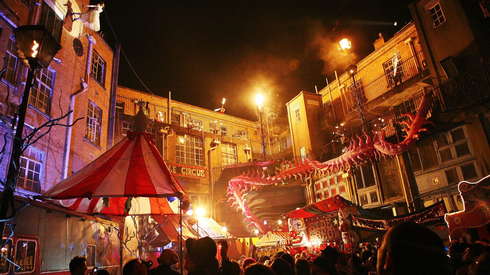 This pic and top pic: scenes from The Invisible Circus’ hugely memorable Carny Ville nights at The Island in 2008 and 2009. Pics: Richard Anderson