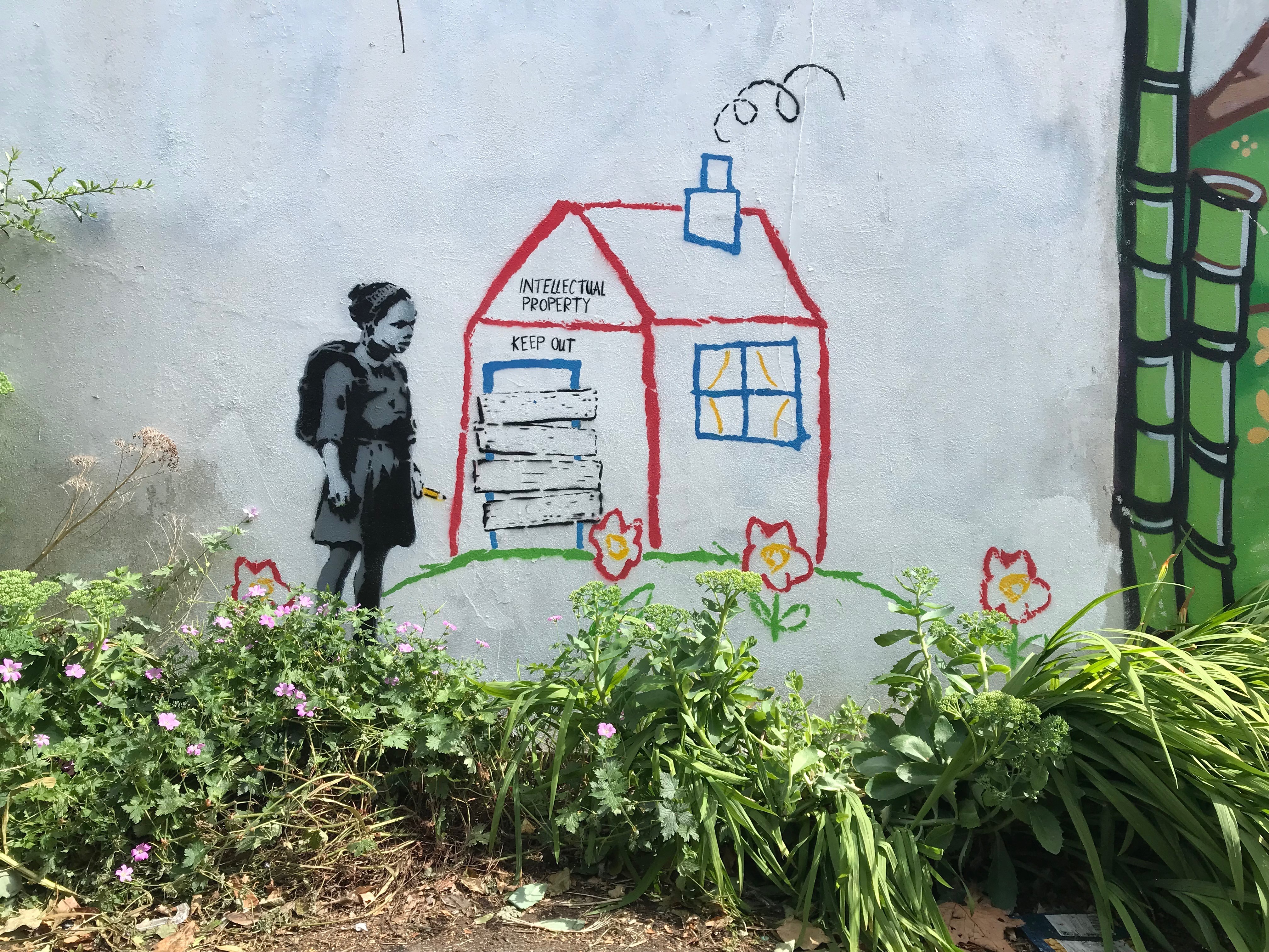 John D’Oh’s piece has ‘Intellectual property, keep out’ written on the crayon house
