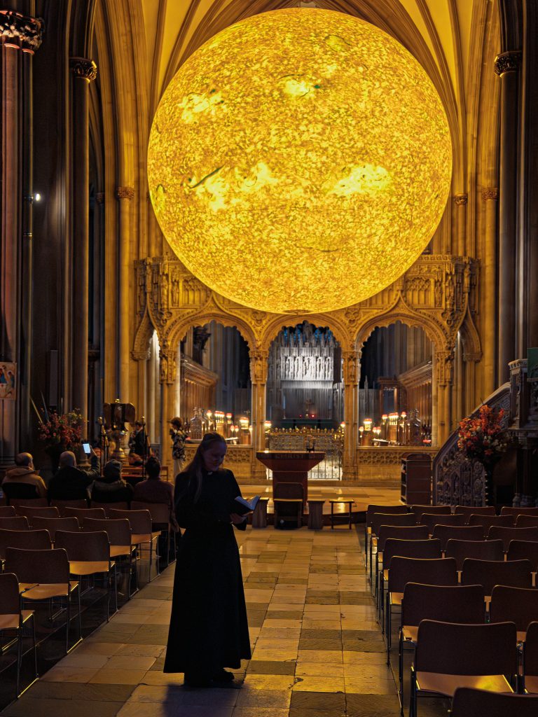 Suspended within Bristol Cathedral, Helios by Luke Jerram comes after previous works of Earth and the Moon in this space by the Southville artist.