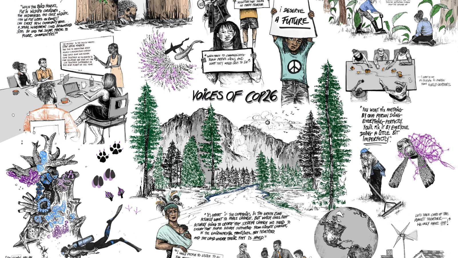 She was commissioned by the University of Bristol Cabot Institute for the Environment to draw on feedback from people who visited areas open to the public at Glasgow’s COP26 in 2021.