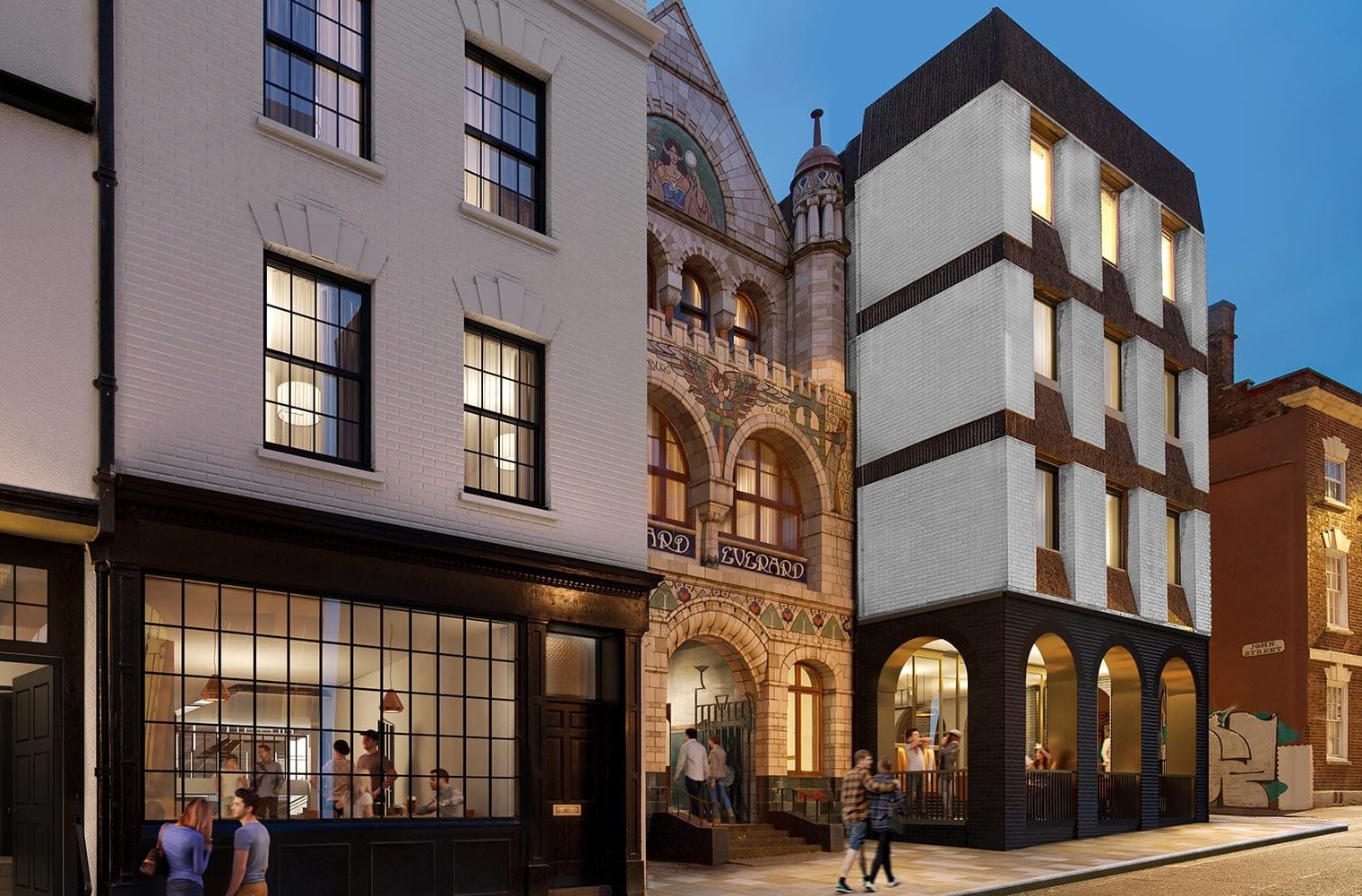 The entrance to the new four-star hotel on Broad Street will be through the historic Everard’s building – CGI: McAleer & Rushe