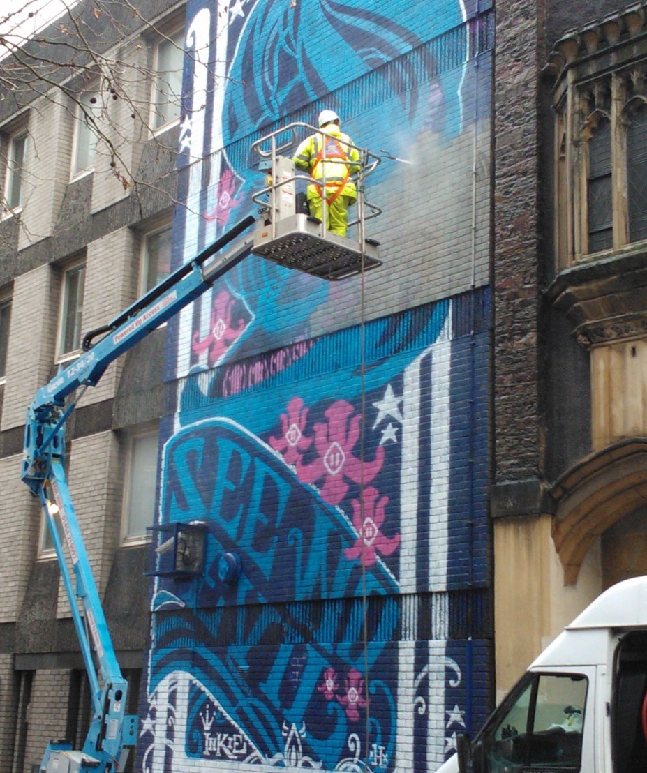 It had a lucky escape the following year after a cherry picker and jet washer combined to remove much of it from the wall.