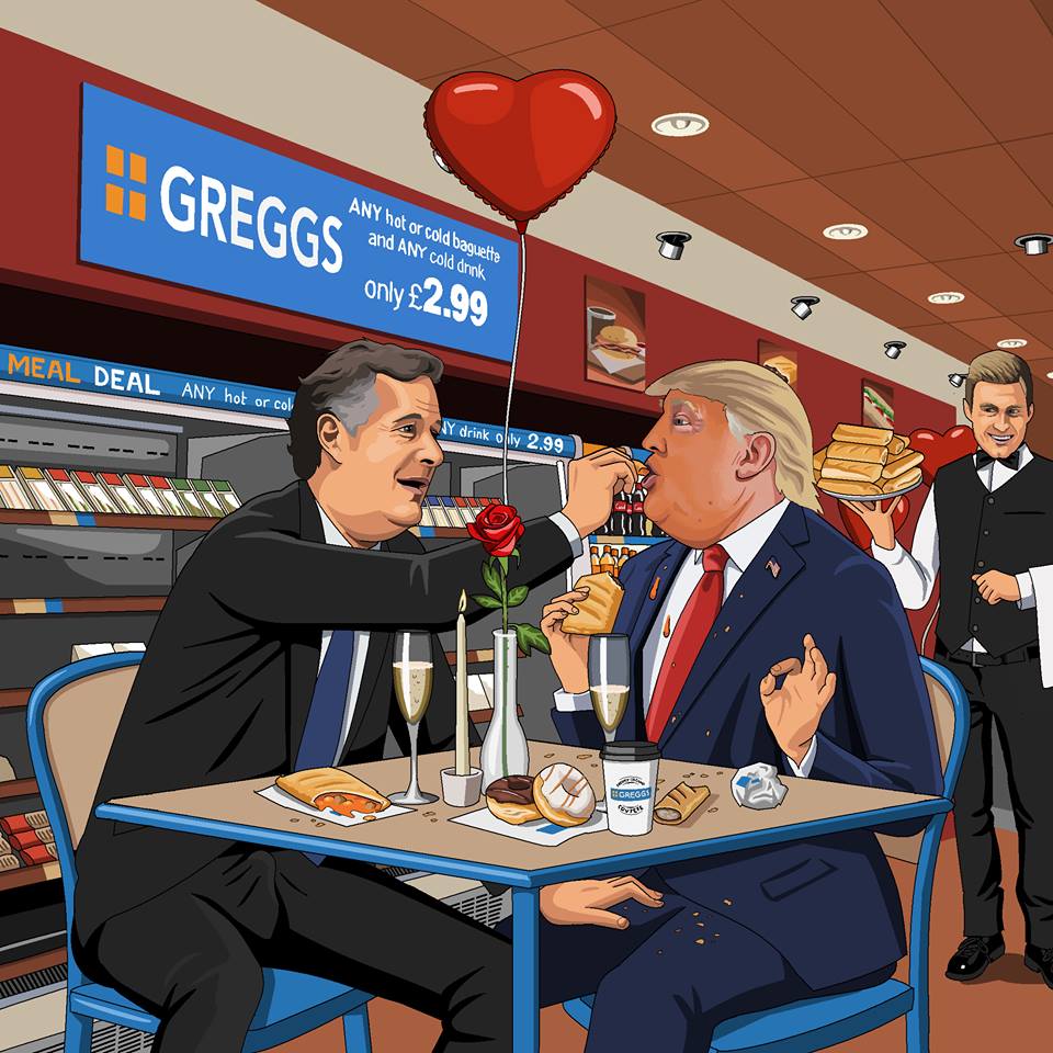 Please, please paint me Donald Trump and Piers Morgan having a date in Greggs on Valentine’s Day.