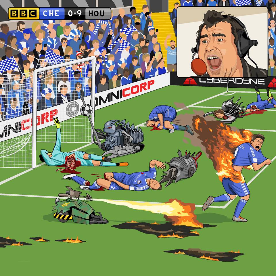 Dear Jim, please could you paint the carnage that ensued when the commentator Jonathan Pearce merged realities and commentated on a Premier League football match between the cast of house robots from Robot Wars and Chelsea?