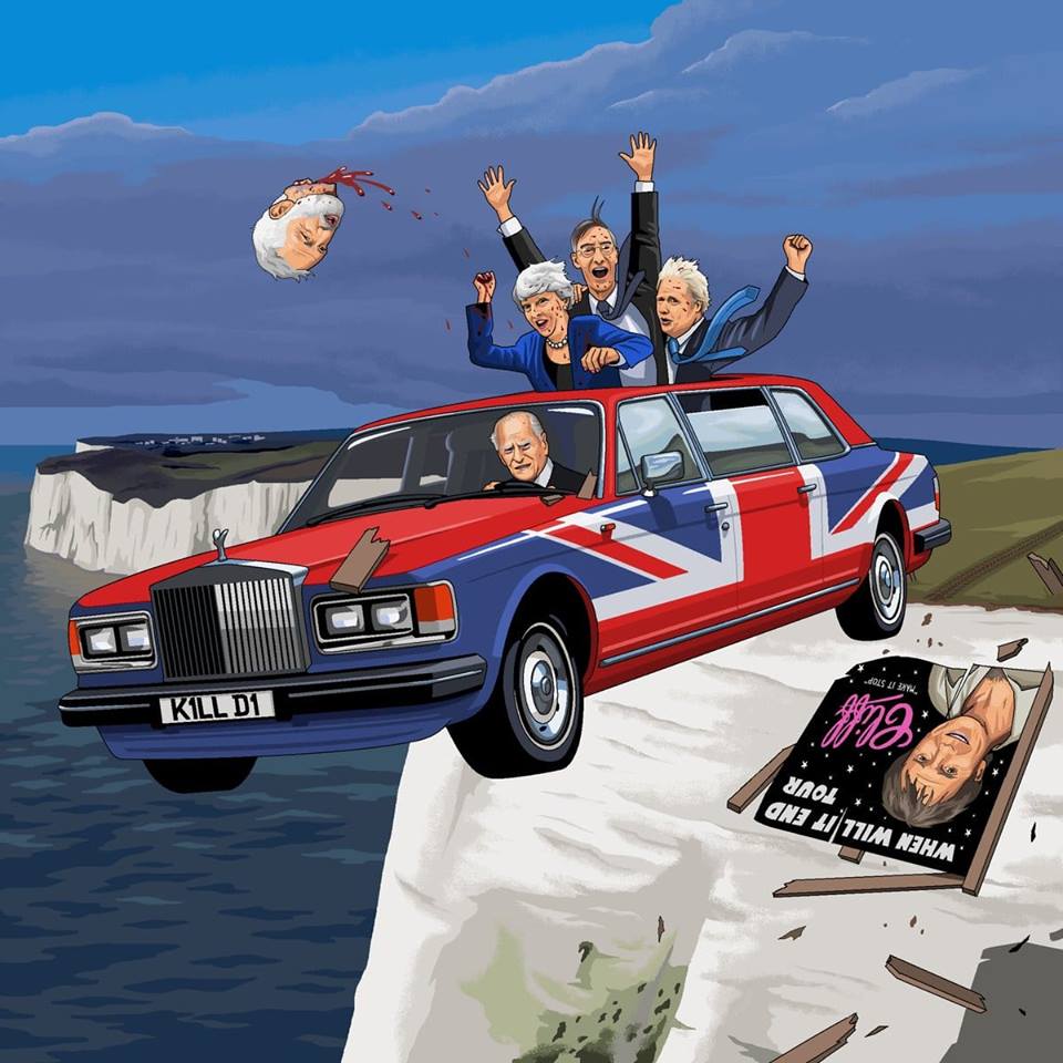 Jim recently fell foul of Facebook censors with a picture he painted of Prince Philip driving Boris Johnson, Theresa May and Jacob Rees-Mogg off a cliff in a Rolls Royce has been deleted.