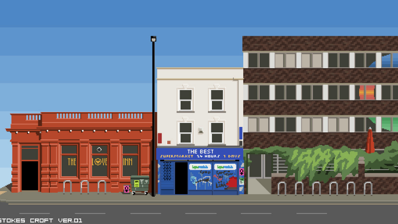 Jim’s love for his adopted hometown saw him recently recreate parts of Stokes Croft and also a few of his favourite pubs using his distinctive MS Paint style: