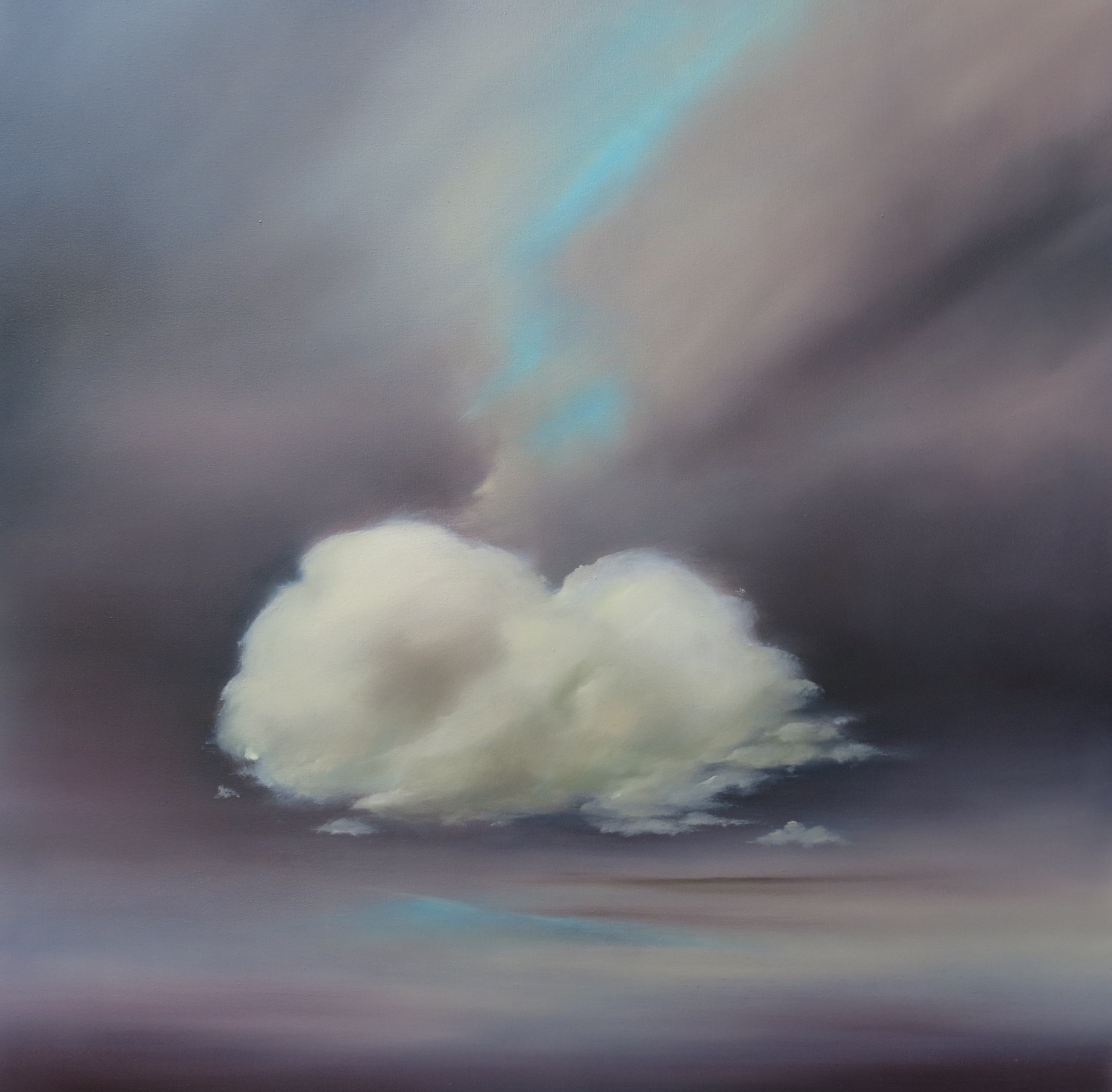 The recurring image of the cloud in my work is a meaningful signifier of an ongoing interest in an aesthetic sensitivity towards the ephemeral. We can sometimes be fortunate enough to witness the sight of a perfectly placed cloud, suspended in the sky, only to look back and find that the vapours have dissolved into nothingness. Just as the blossom falls to the ground, and the snow melts, the quiet allure of the cloud can heighten our awareness of fragility. With this melancholic sensibility, also comes an appreciation of witnessing such a fleeting, temporal occurrence.