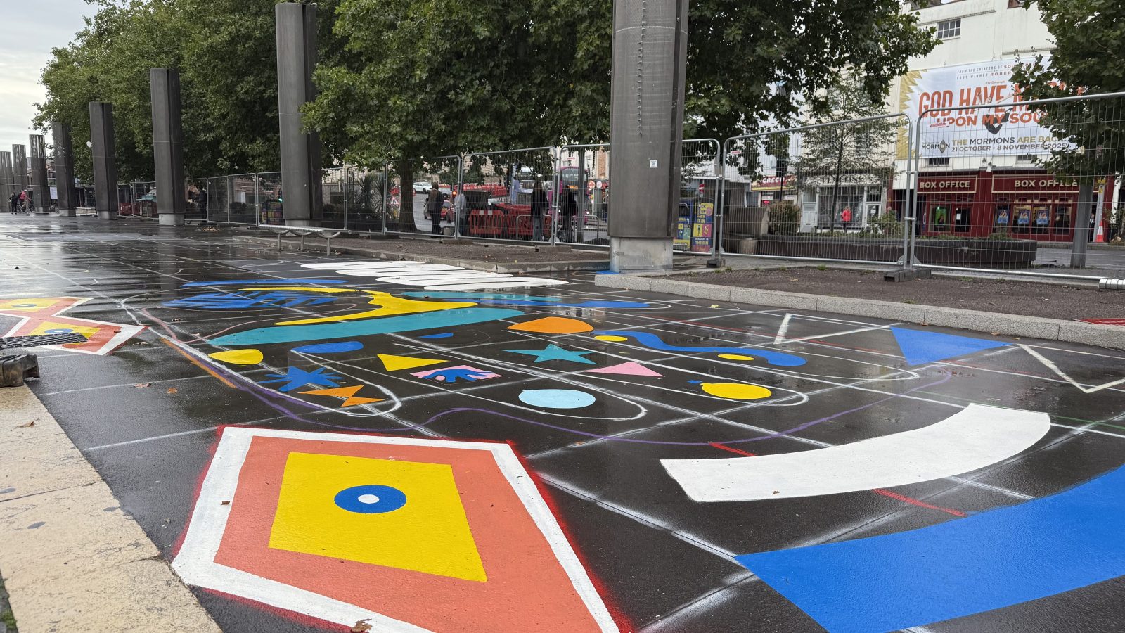 The latest reinvention of the Centre is now underway with a “landmark public artwork” being painted on the newly resurfaced tarmac throughout September.