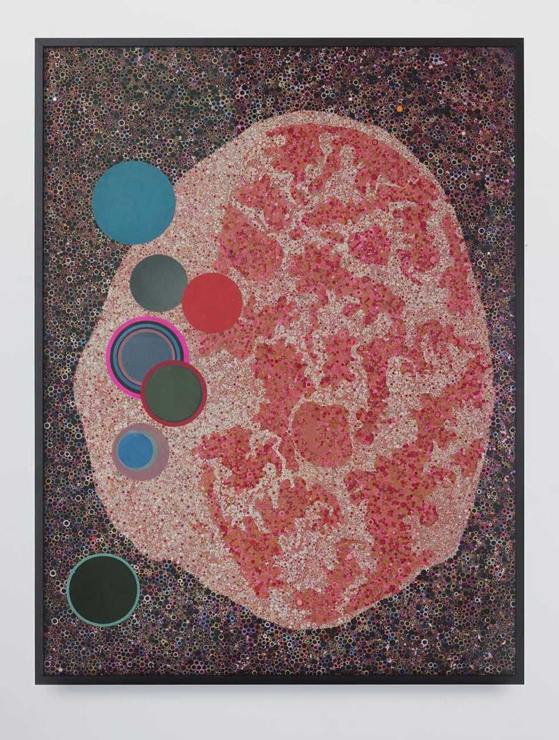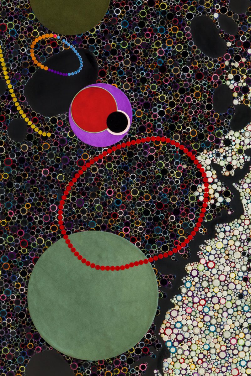 BK: “The bindi works have been a form of collage through which I’ve been drawing with singular cells and circles for many years, representing both the micro and the macro, inside the body and outside. Perhaps one way to talk about what we don’t know (the unconscious or matters of the spirit) is metaphor.”