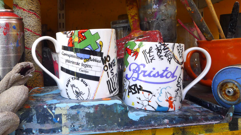 “It was a short conceptual leap, in true Stokes Croft style, to take something which is traditionally the preserve of the elite and to use it to produce ware that is anarchic in nature and which generates funds for an organisation that seeks to find alternative, fairer and better ways of doing things,” Chris says.