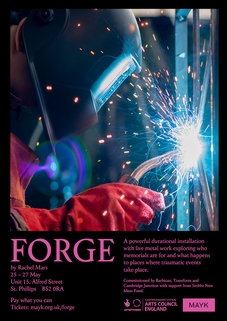 FORGE (age recommendation 16+) is at Unit 15, St Philips on May 25-27. Opening hours are 6-9pm on Thursday, 4-9pm on Friday, and both 12-3pm and 4-8pm on Saturday. Entry is given at 15 minute intervals, with each slot designed to allow a minimum of 45 minutes in the space.