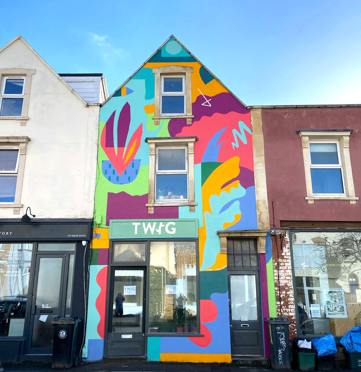 She sees her murals as a celebration of life, nature, and the community. “I am constantly inspired by the vibrant and dynamic energy of Bristol, which offers a beautiful canvas for my public art,” she remarks.