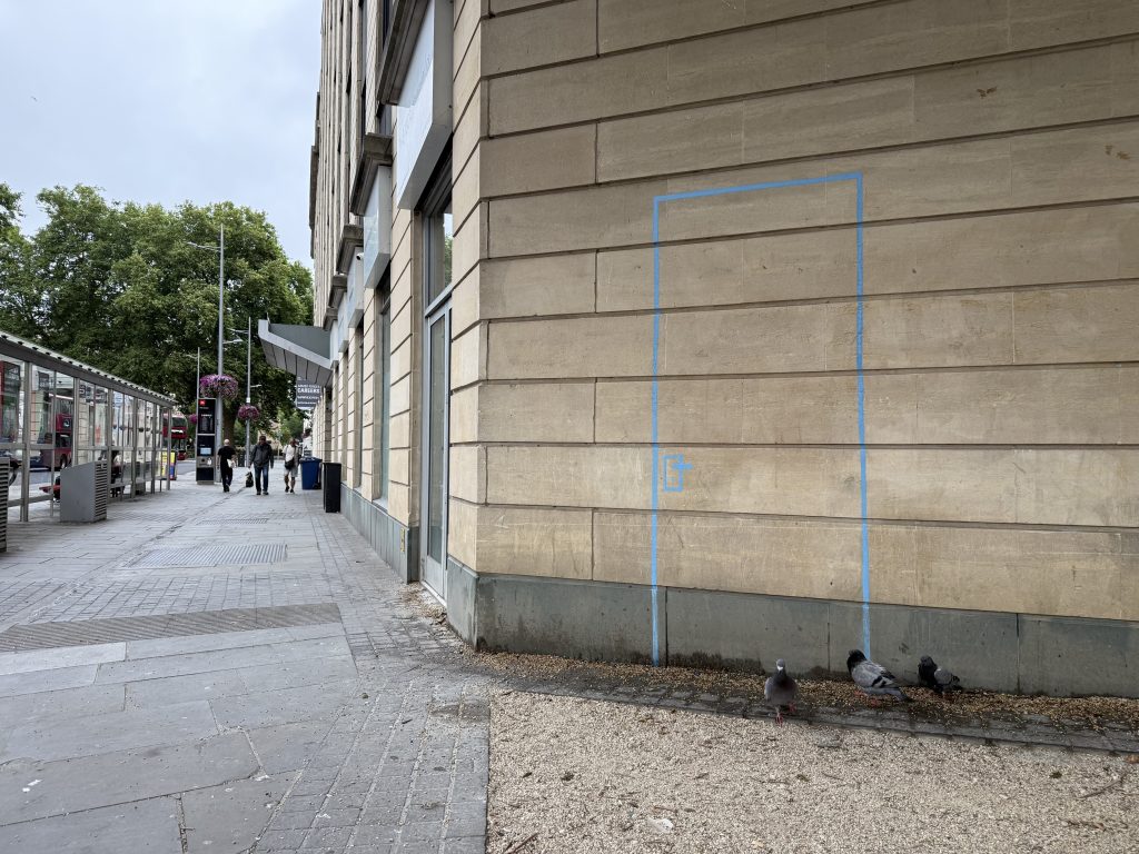 The white, yellow and blue doors have been painted in locations around the city centre with artwork spotted on Clare Street, Anchor Road, Castle Park and Redcliffe Way.