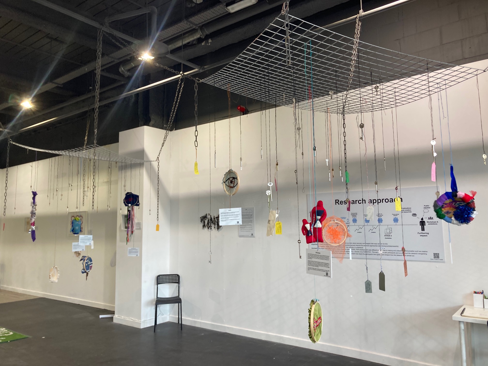 Visitors are invited to engage in some of the research methods used in the project, with thread work, body maps, stop frame animation and drawings, which can then be added to the exhibition.