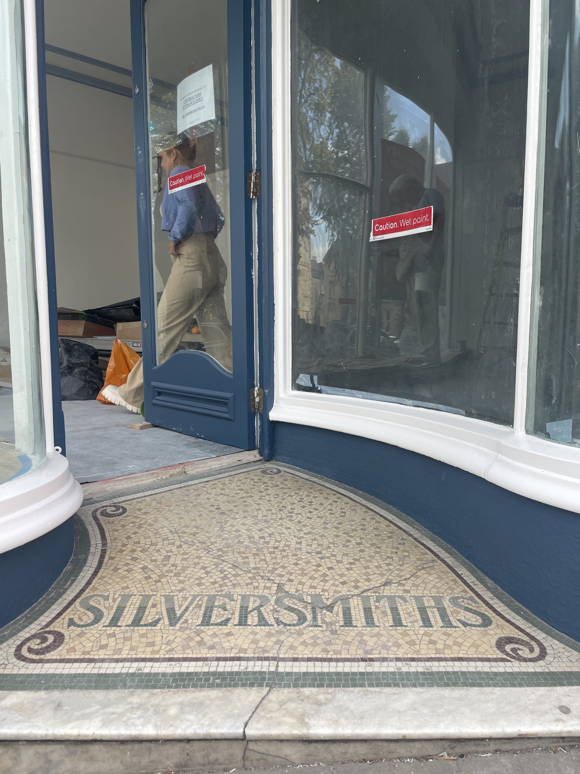 A mosaic spelling out ‘silversmiths’ is a clue as to a previous incarnation of 74 Whiteladies Road – photo: Martin Booth