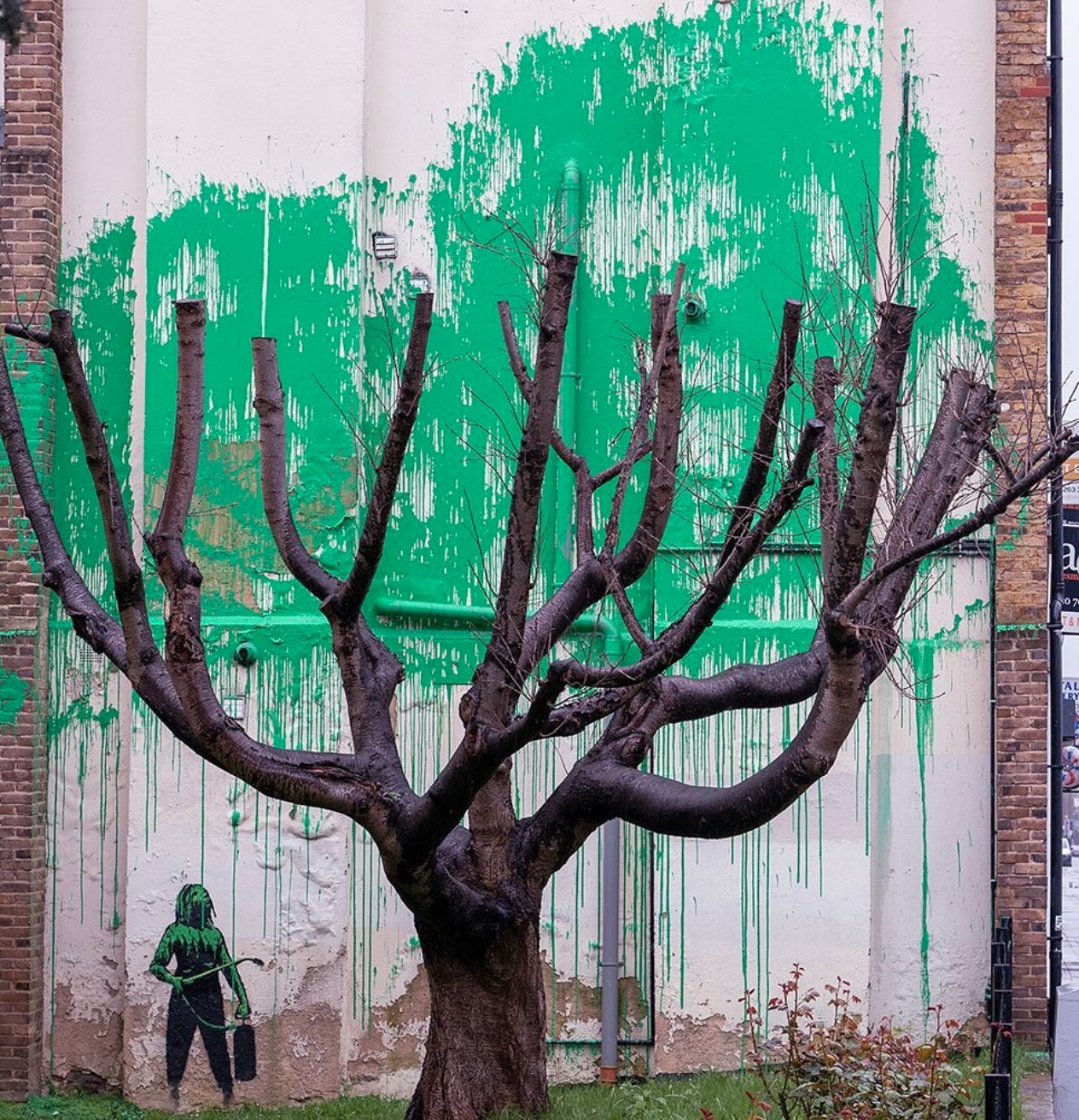Banksy’s tree foliage mural before being vandalised – photo: Banksy