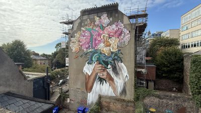 The collaboration between Aimes Was Here, Conrico Steez, Jody and Melo Murals is at the People’s Republic of Stokes Croft’s outdoor gallery on Jamaica Street.