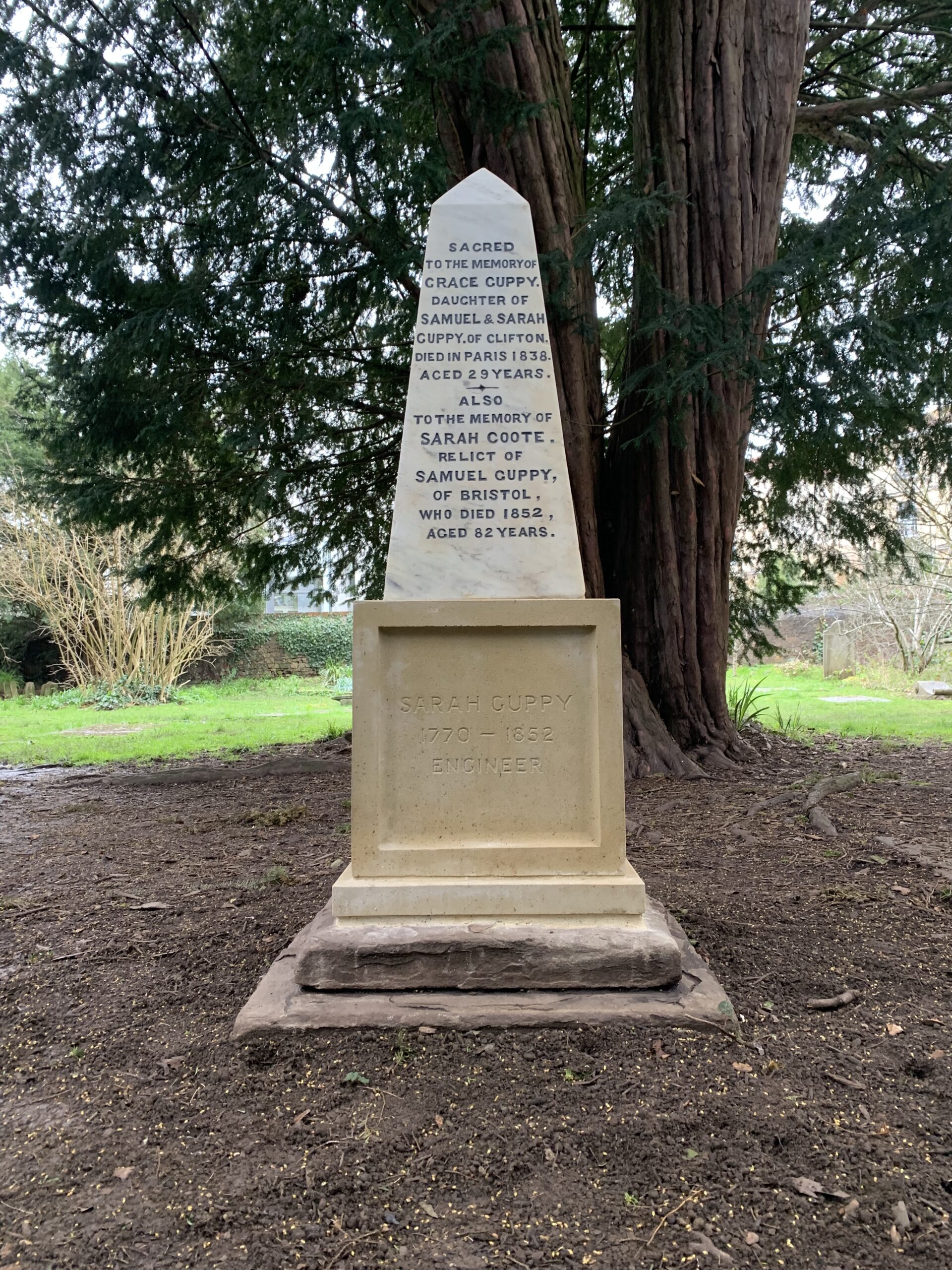 Sarah Guppy’s grave has now been restored and sits in St Andrew’s Churchyard. It also commemorates her daughter, who died before her mother in 1838