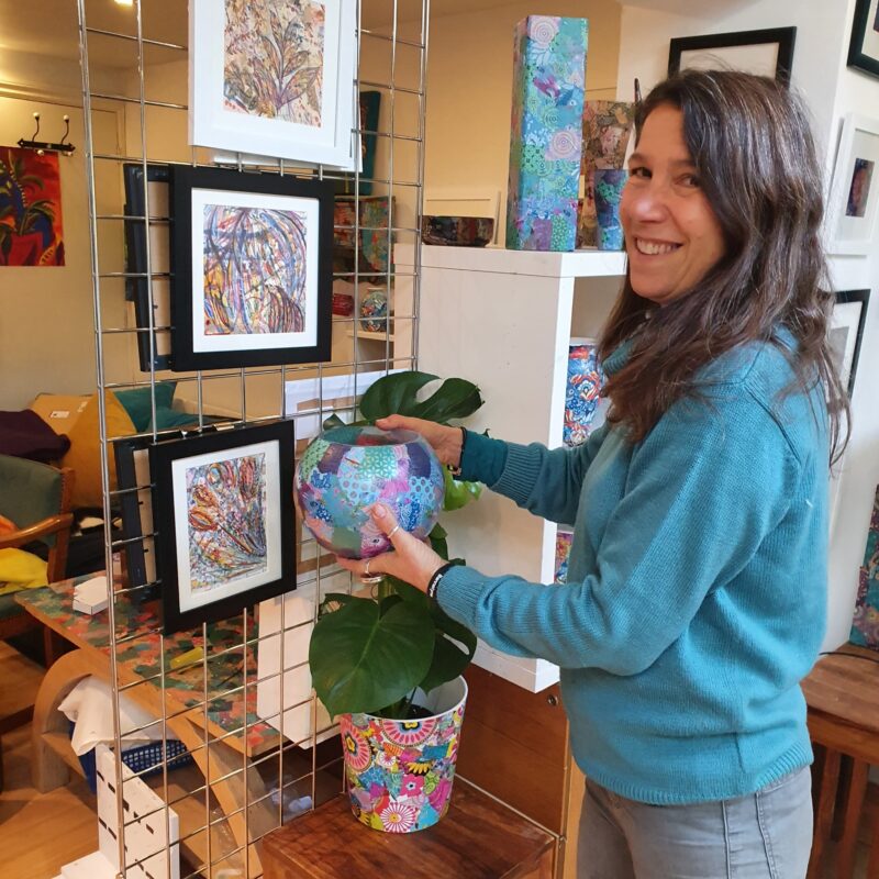 “We’ll be welcoming people’s interest and showing a variety of handmade craft and art such as paintings, prints, ceramics, stained glass, polymer mosaics and jewellery. On the trail, people-handling, chatting about and taking pots I’ve made, to use every day or give to someone special as a present… that feels brilliant for me!”