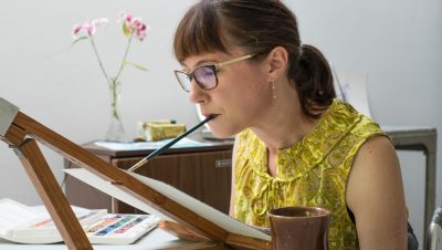 The Bristol-based artist paints using her mouth following a spinal injury that left her paralysed