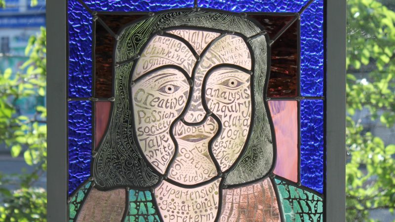 Sarah Davies’ stained glass portrait of researcher Nancy McBride