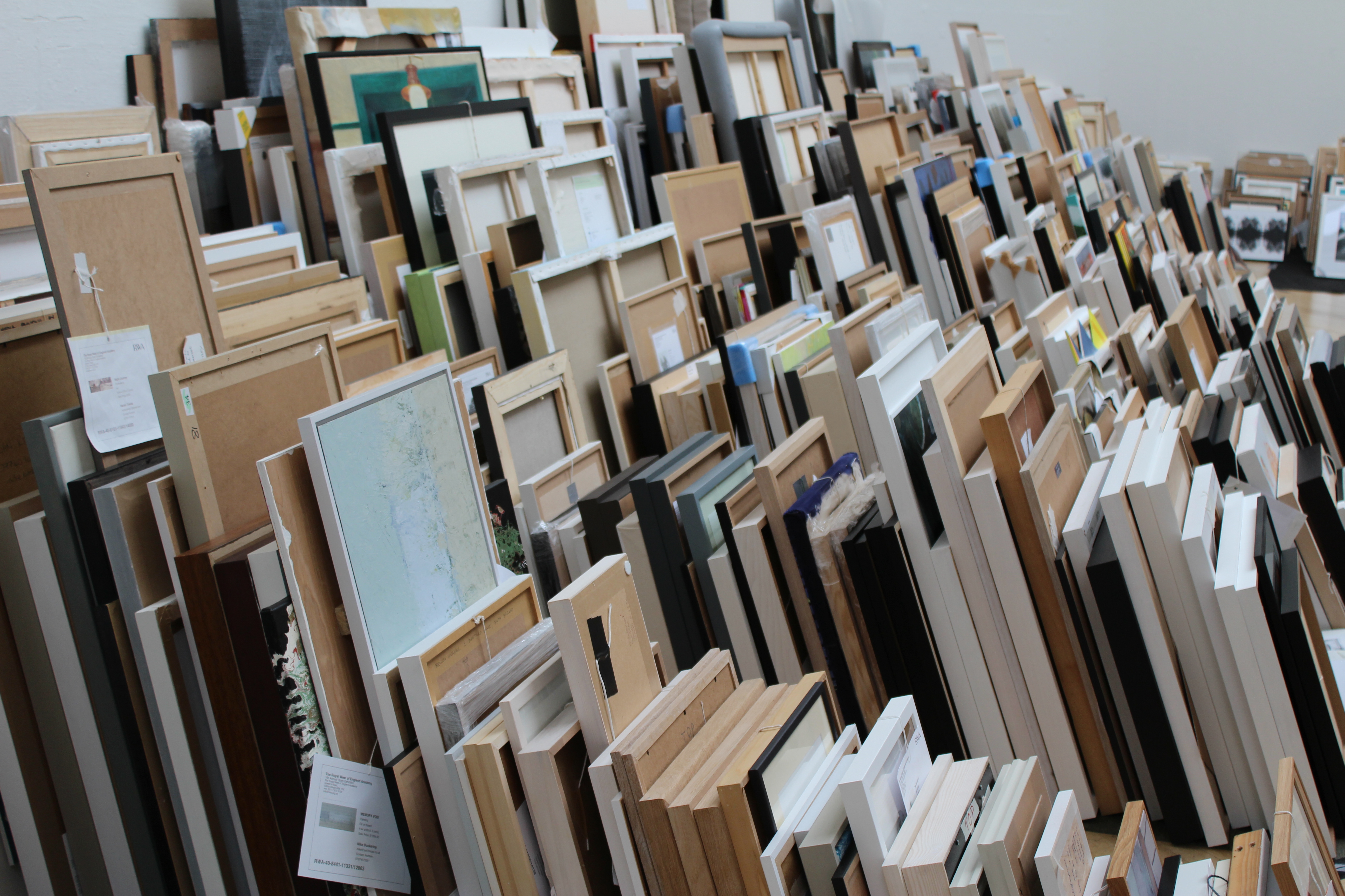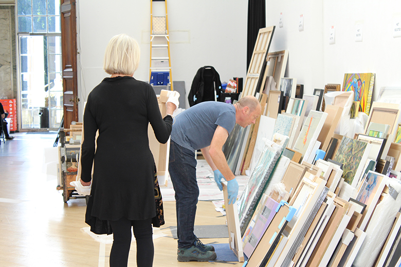 On hand-in day the artworks pile up, in neat, carefully-labelled stacks along the gallery’s gleaming walls. What happens next? “Then it’s Selection Day,” Tristan explains. “It’s always really fun but very intense! We have so many artworks to look through in one day. It’s a bit tough on the knees too.”