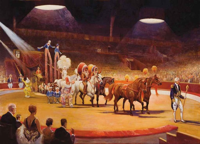 The Grand Parade, Bertram Mills Circus at Olympia by Edward Seago, 1932, oil on canvas, courtesy of Gerry Cottle