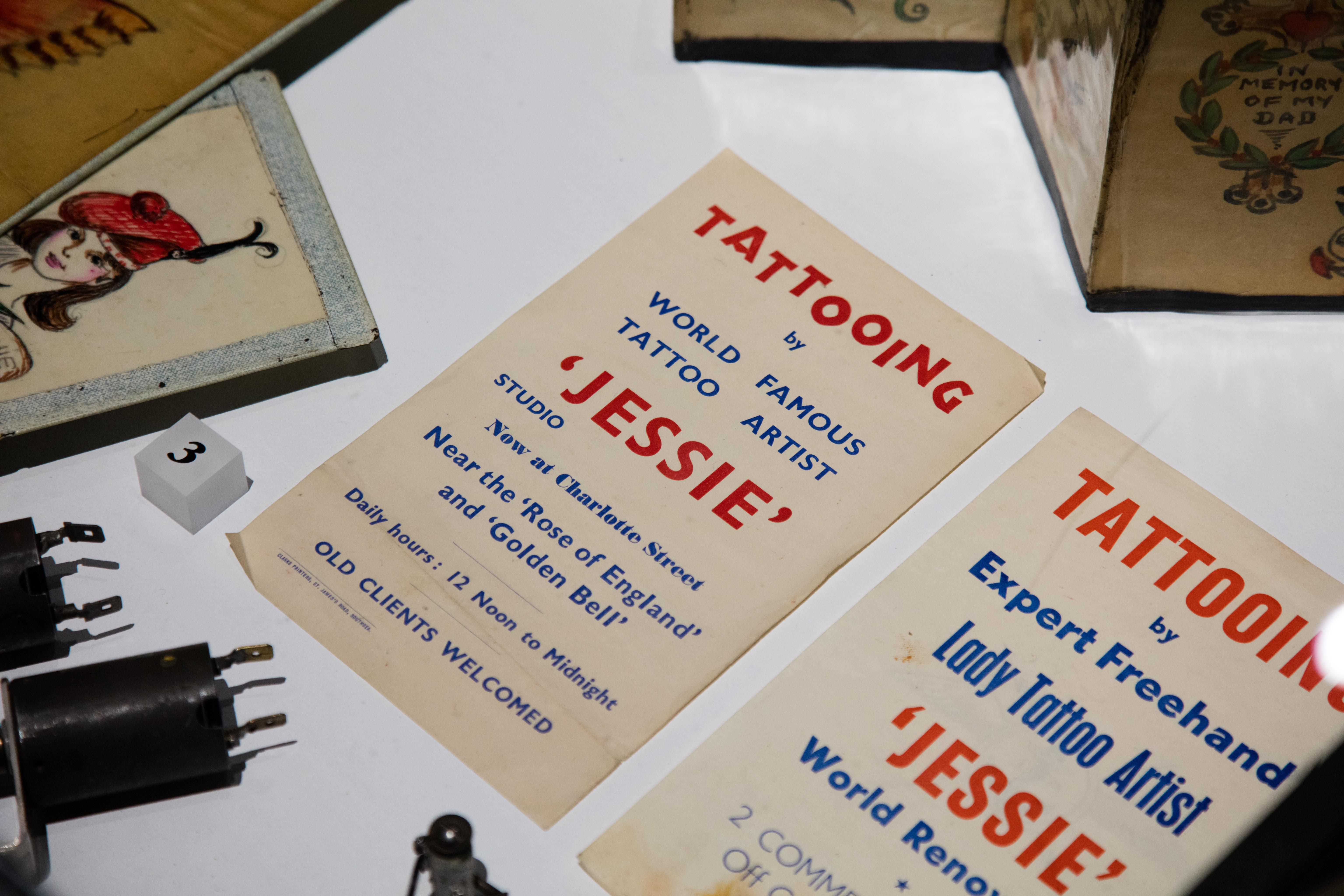 The exhibition features items from three of the most important private collections of tattoo material in Britain, belonging to Paul ‘Rambo’ Ramsbottom, Willie Robinson and Bristol’s Jimmie Skuse. It also delves into previously unseen private archives that reveal hidden histories – including the incredible real story of Britain’s pioneering female tattoo artist.