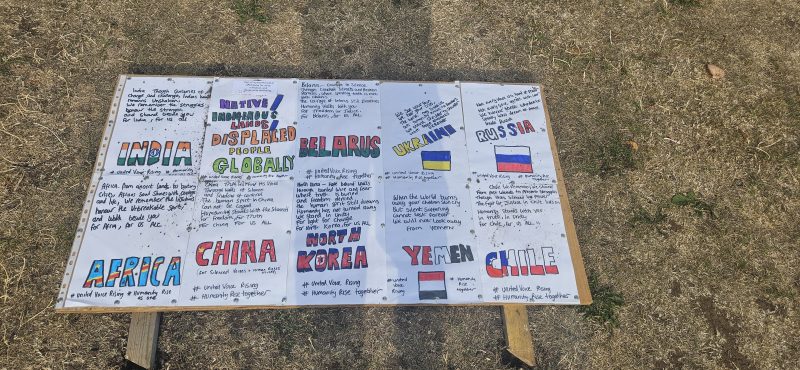 Other boards displayed names of several countries from around the world – including India, Belarus, Ukraine, Russia, Africa, China, Sudan and North Korea – each representing voices from within this country that stand for “unity, reflection and community wellbeing”.