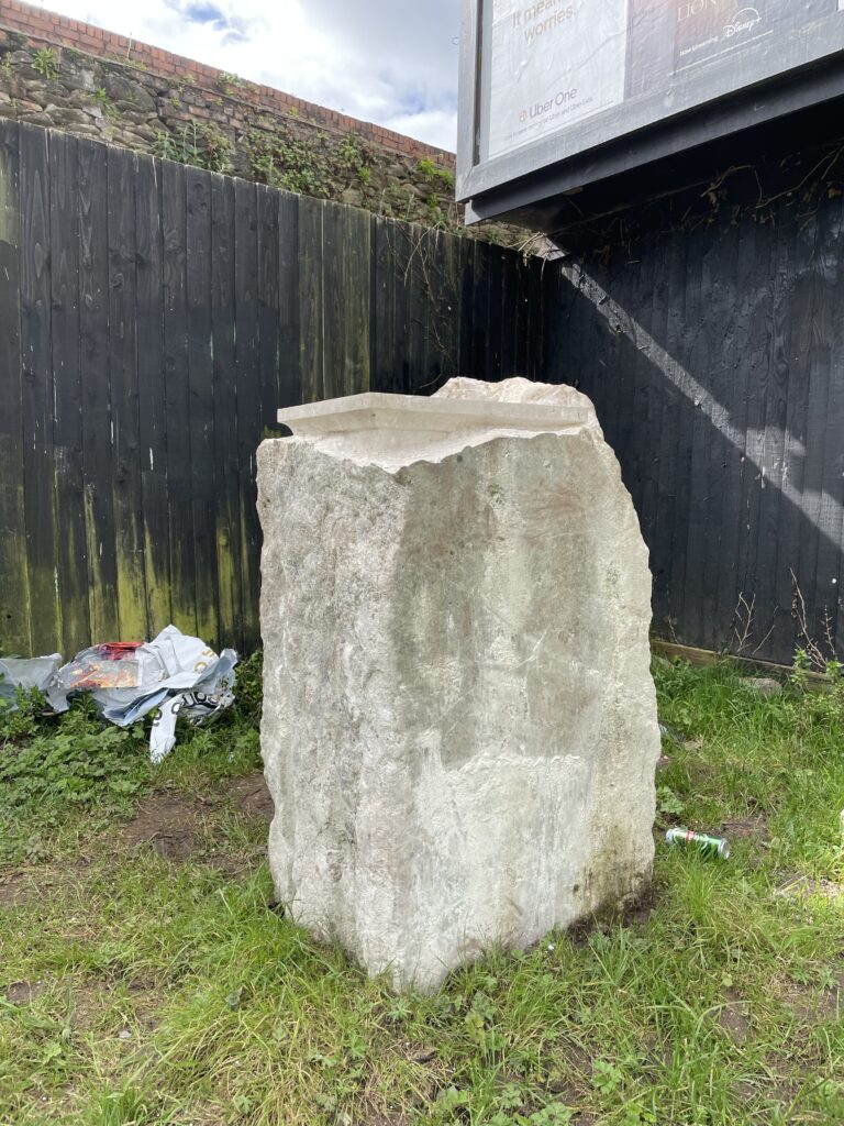 The third carving on Old Market Lawn remains tantalisingly devoid of words – photo: Martin Booth