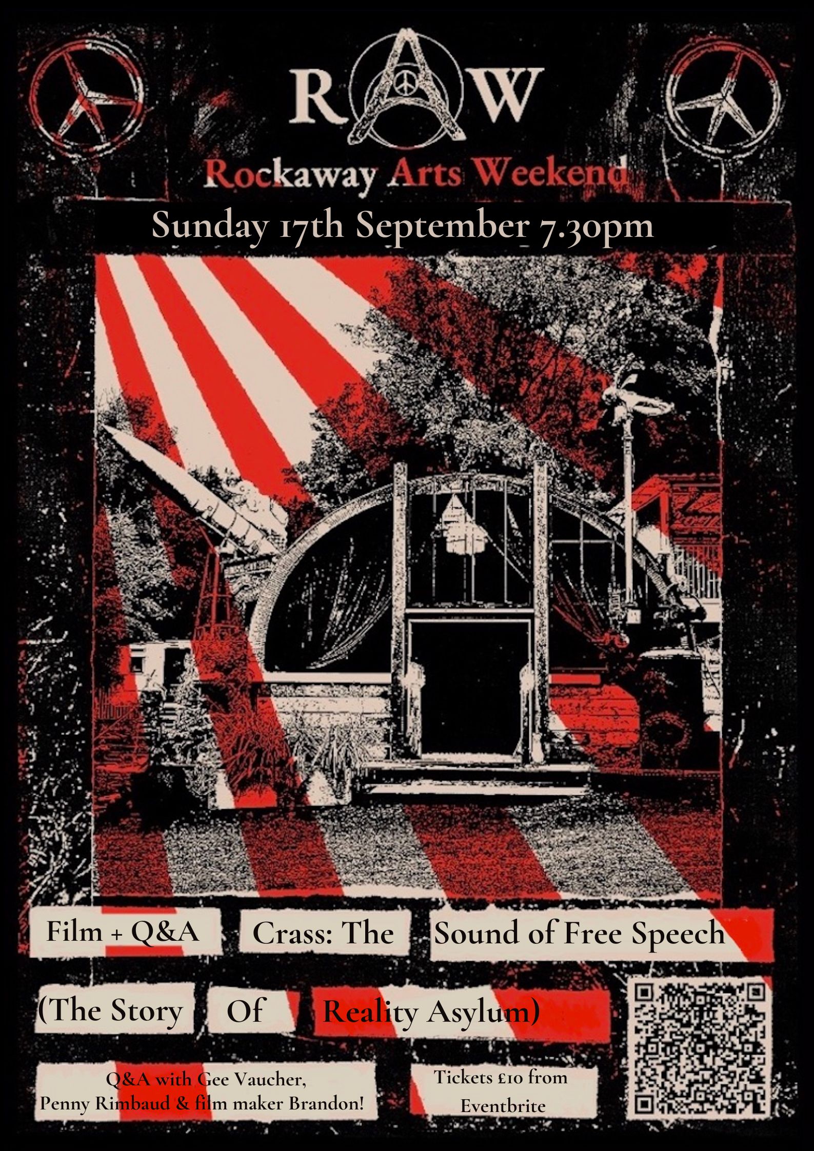 The Rockaway Arts Weekend is at Rockaway Park on 15-17 September, with free entry to daytime activities (11am-5pm) and ticketed evening events (7pm-11pm) purchasable via www.eventbrite.co.uk: The Hawkmen & Los Dedos on Friday 15; Commoners Choir & Nick Harper on Saturday 16; and film + Q&A – Crass: The Sound of Free Speech (The Story of Reality Asylum) on Sunday 17.