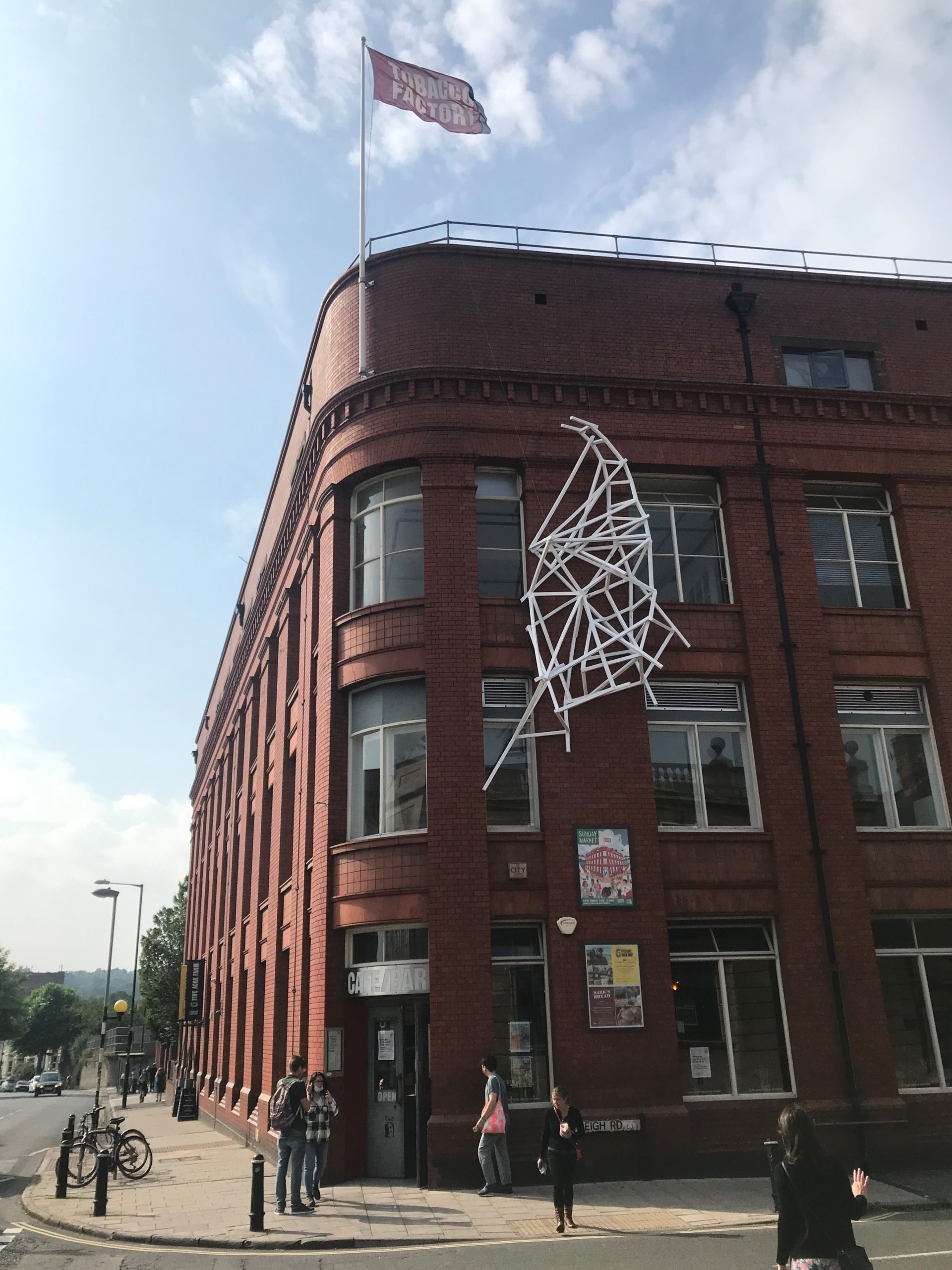 The sculpture has been installed on the Raleigh Road side of the Tobacco Factory, where it will remain until the end of August.