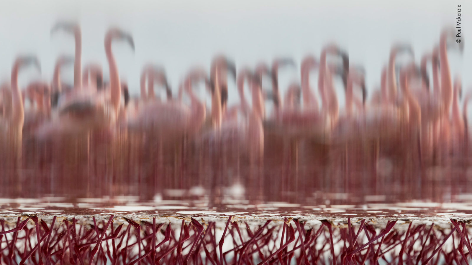 Flowing south through Kenya, the river empties into the caustic waters of Lake Natron in northern Tanzania, a major breeding site for lesser flamingos, which rely on the river’s fresh water for drinking and for cleaning the salt from their feathers. As his small plane flew over the fern one final time, Paul framed his shot through the open door, battling against turbulence to capture nature’s silt and water composition.