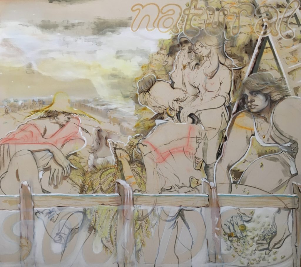I’m primarily a painter, though drawing and writing also underpin my work: narrative shapes my practice. My paintings are concerned with seasons, landscapes and emotions, and are primarily led by the body. I have a cast of male and female protagonists that recur, springing from the history of the figure as told through high art, popular culture and personal narrative.