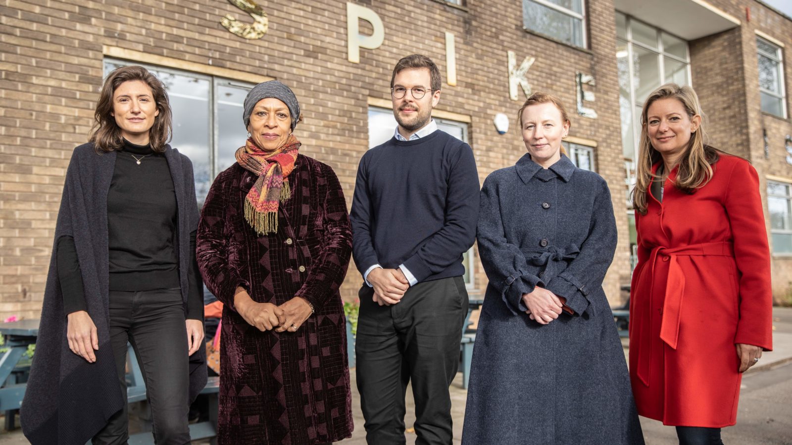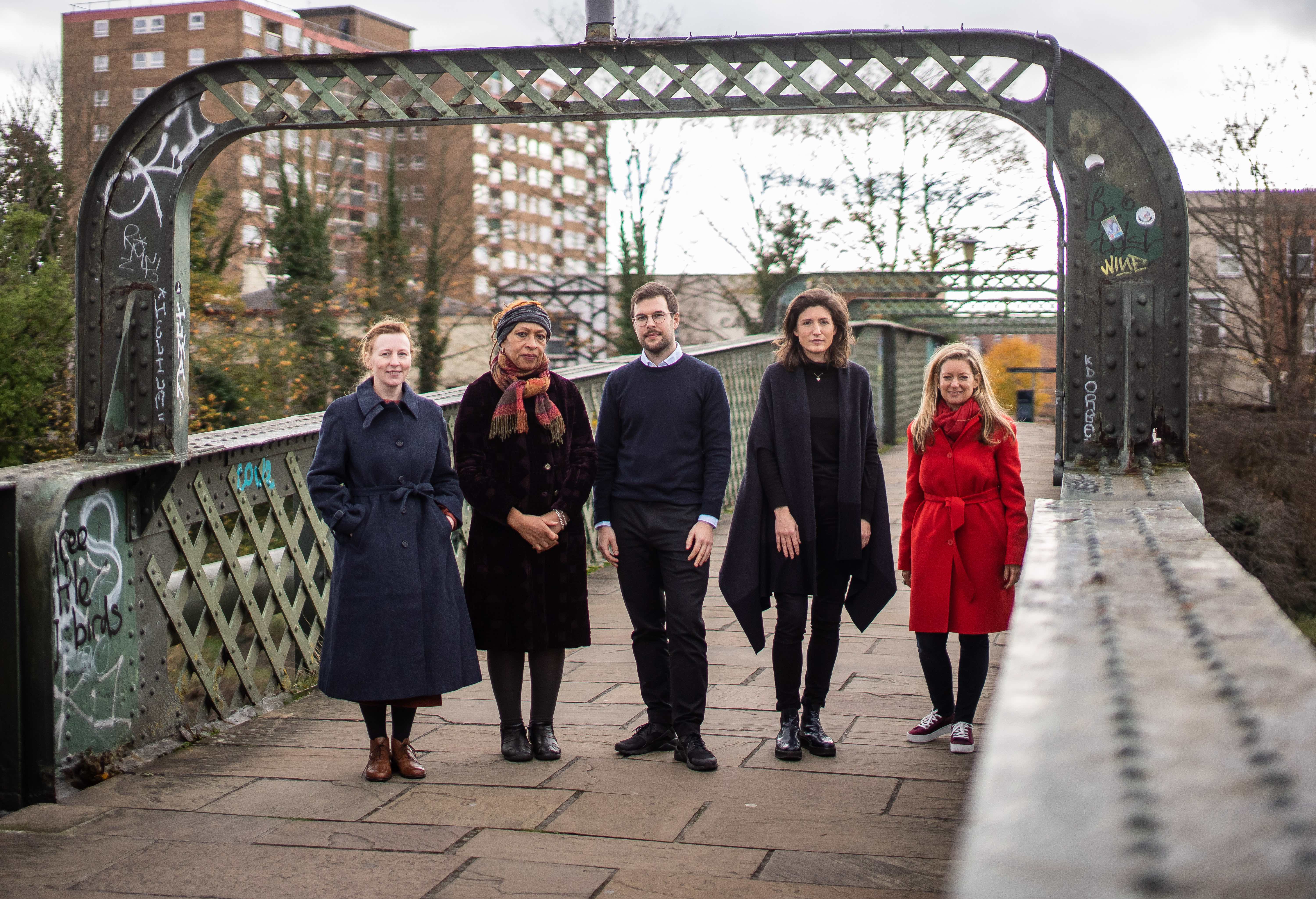 Veronica Ryan (second left) with Spike Island curators Elisa Kay and Vanessa Boni, director Robert Leckie and (far right) Melanie Cassoff, managing director, Freelands Foundation