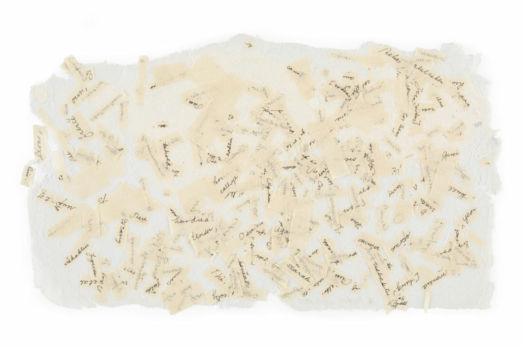 Howardena Pindell, Text (1975), ink on paper, collage – photo: courtesy of the artist, Garth Greenan Gallery, and Victoria Miro