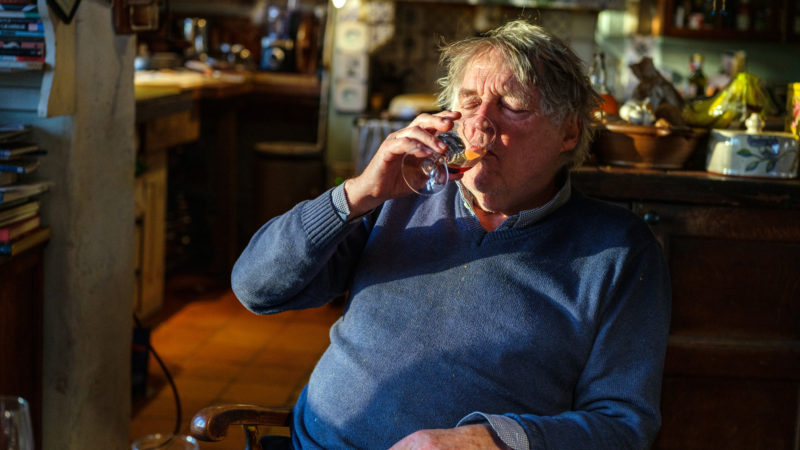 Julian Temperley tasting cider brandy, Burrow Hill, 2020, from Made out of Orchards, Martin Parr Foundation – photo: Tessa Bunney