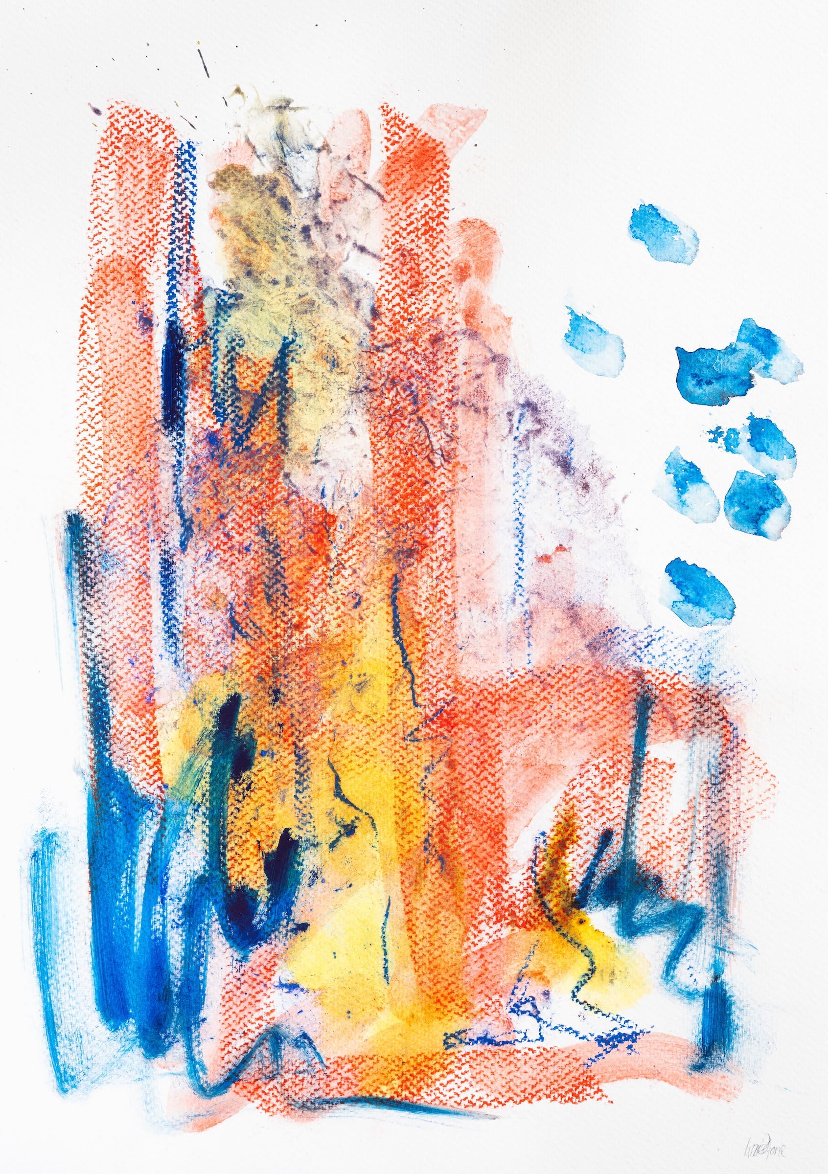 Her work is continually evolving, and is often shaped by, chance, manipulation, or the unpredictable nature of the paint she uses.