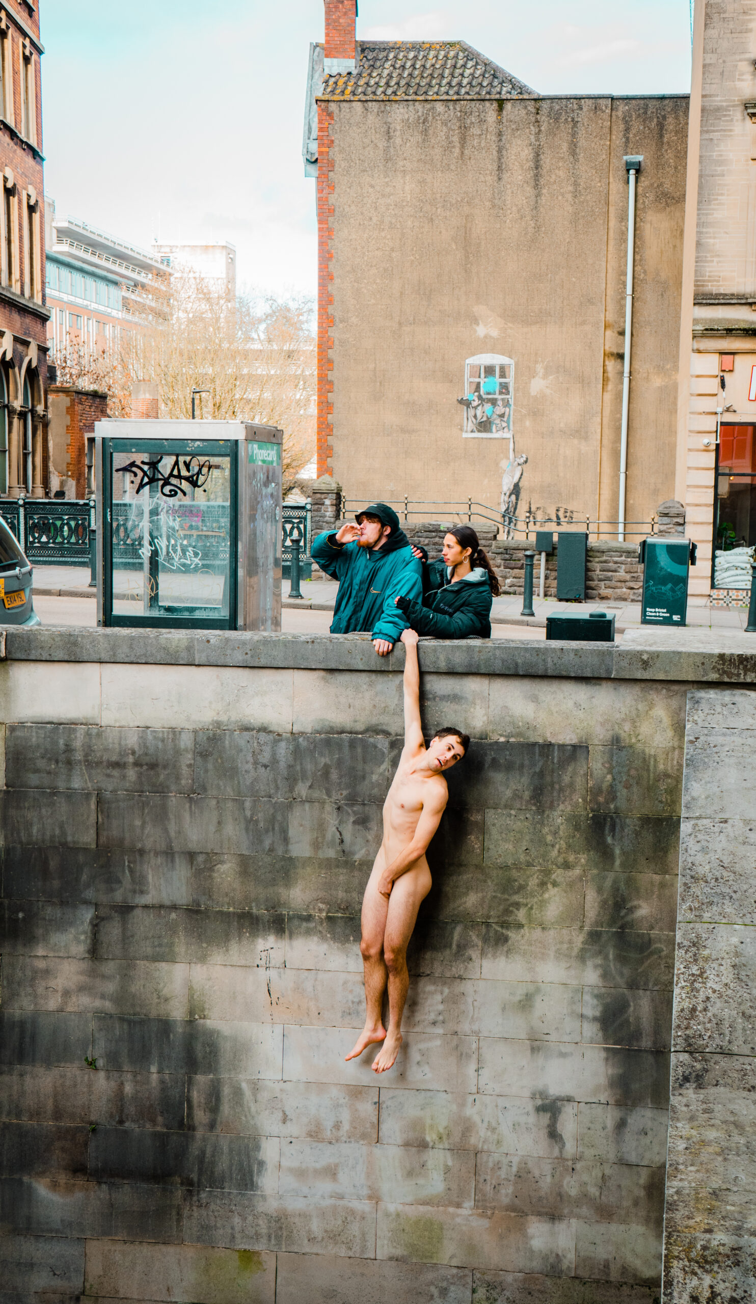 On a freezing cold day in the middle of lockdown in November, 2020, a Bristol artist stripped off to recreate a piece of Banksy artwork.