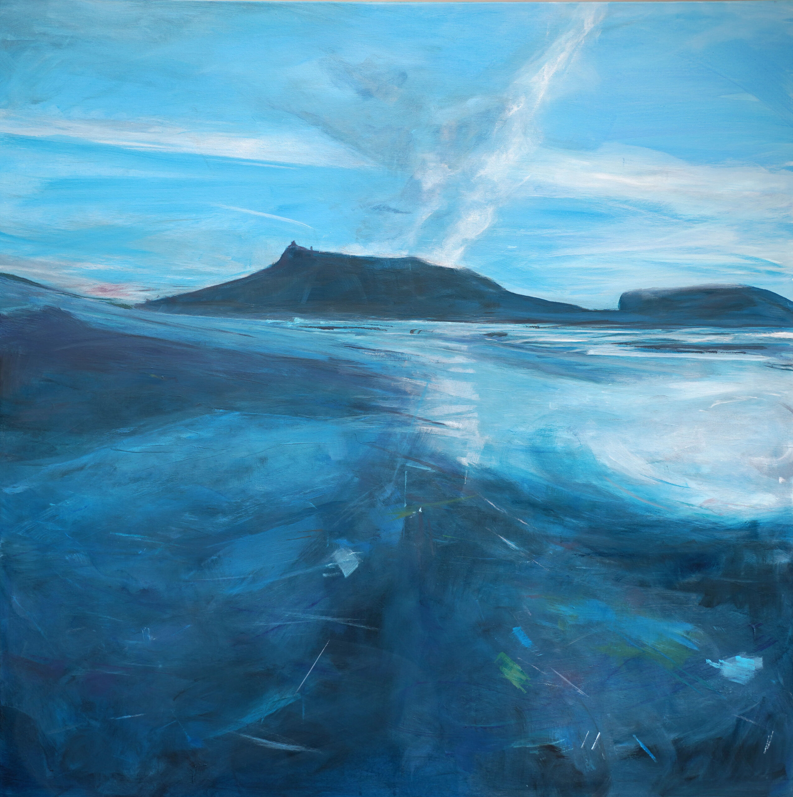 “It’s by a surfer photographer in St Ives,” she explains,” and was taken when he was on his board looking back over ‘The Island’. I just had to paint it.”