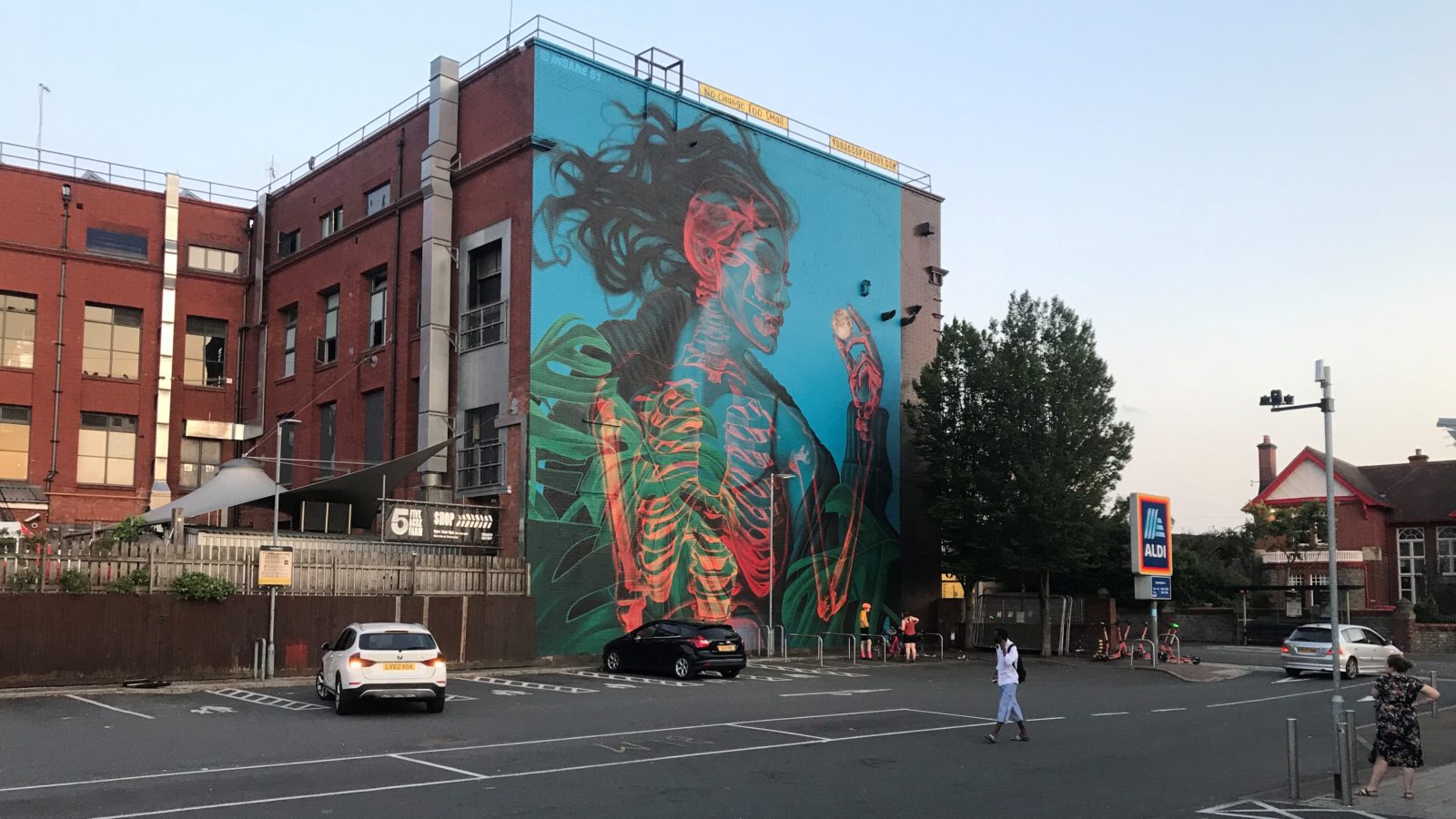 His new piece in Bristol of Nyx, the Greek goddess of the night, was completed as part of Upfest’s project to paint 75 walls across Bedminster in 75 days.